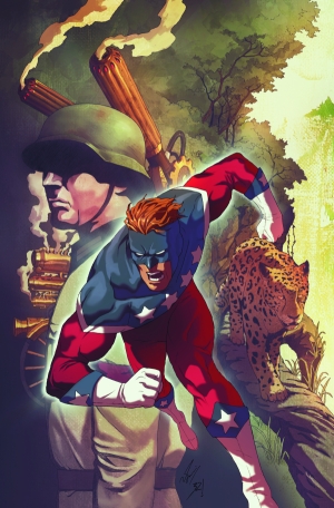 (Ghosts, part 2): The Shield continues his search through the Brazilian jungles for the mysterious Nazi tech he encountered with the Great Ten. But another hero is on the hunt – the mysterious Jaguar!